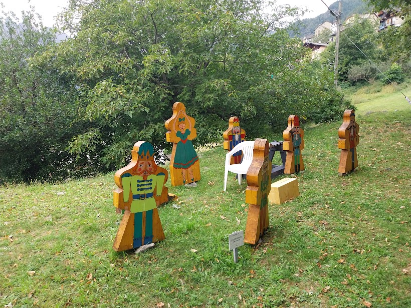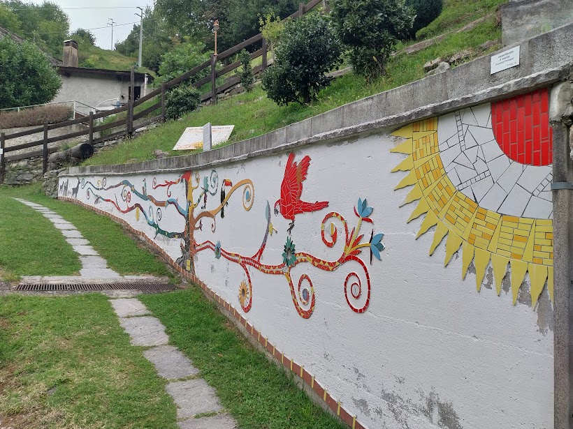 Adesso? C’è forse un solo albergo aperto, non ci sono più un bar o un negozio, c’è qualche edificio in rovina, c’è un’aria d’abbandono che rattrista. Con questi pensieri seguo la piccola strada, che diventa più in alto scalinata, passando dalla bella chiesa e tornando sulla provinciale all’altezza dell’ex hotel Croce Bianca. Scendo per qualche decina di metri ed imbocco il Sentiero del Paese Cantato. Inizialmente, in sintonia con Bognanco Fonti, ci sono un po’ di rovi, ma il sentiero è bello ed evidente, subito pulito.